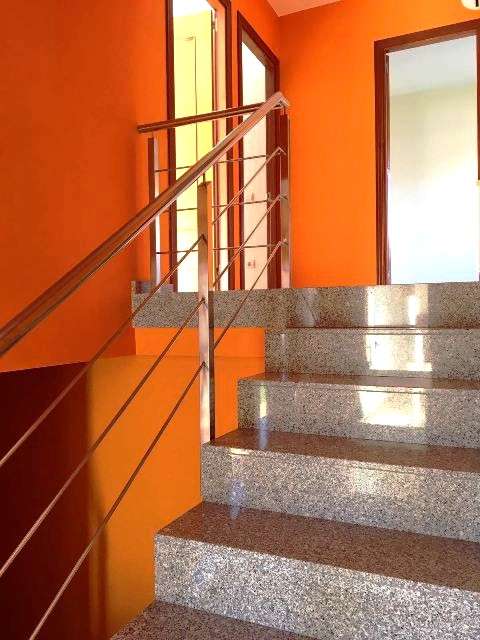 Aquesta casa forma part d’un grup de 4 cases adossades i construïdes d’obra vista a Porqueres. A la casa hi trobem dos nivells marcats de construcció, que ens separen amb pocs esglaons, la zona de nit de la zona de dia. El garatge queda a carrer, així com la sala de màquines. Accedim al primer nivell des del garatge i trobem la zona de dia, amb la cuina independent, un bany, el rentador i el menjador amb sortida directa al jardí. Tot amb grans finestrals que ofereixen llum i sol a la casa. Pujant aquests pocs esglaons arribem a la zona de nit. La casa disposa de tres habitacions i un altre bany complet. Una altra cosa molt interessant és que la casa es va construïr pensant en la possibilitat si és necessari d’aixecar una planta extra. Realment és una casa molt ben mantinguda amb moltes possibilitats, molt còmode i ben situada senses oblidar el sol que li toca durant tot el dia.